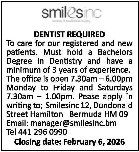 30 Jan 2026 Dentist Posted in By Jobs in Bda On January 30, 2026 Full Time Anywhere Posted 15 minutes ago Jan 30, 2026