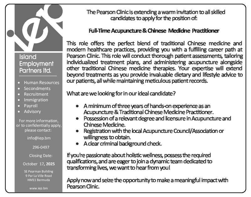08 Oct 2025 Full-TimeAcupuncture& Chinese Medicine Practitioner Posted in By Jobs in Bda On October 8, 2025 Full Time Anywhere Posted 16 minutes ago Oct 08, 2025