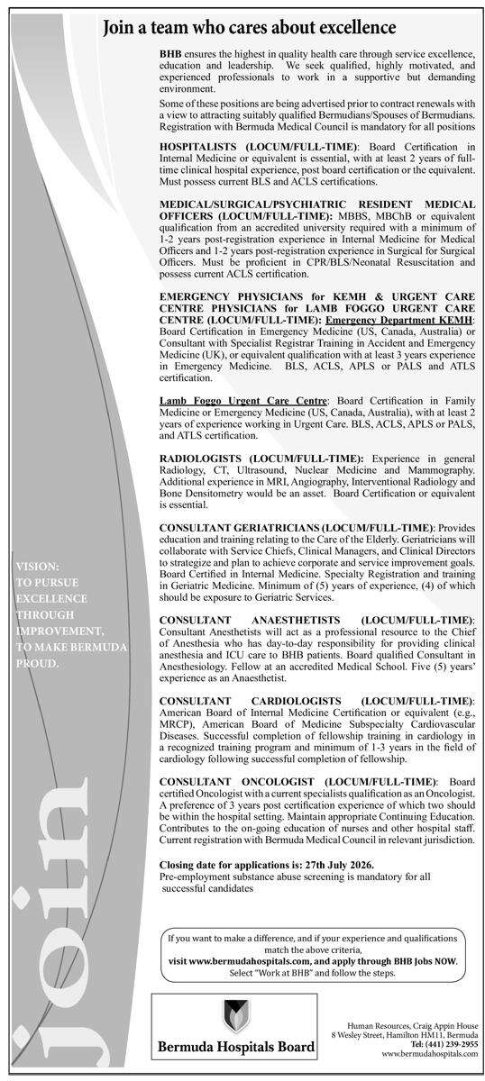 HOSPITALISTS, MEDICAL/SURGICAL/PSYCHIATRIC RESIDENT MEDICAL OFFICERS, EMERGENCY PHYSICIANS, Lamb Foggo Urgent Care Centre, RADIOLOGISTS, CONSULTANT GERIATRICIANS, CONSULTANT ANAESTHETISTS, CONSULTANT CARDIOLOGISTS and CONSULTANT ONCOLOGIST (LOCUM/FULL-TIME)