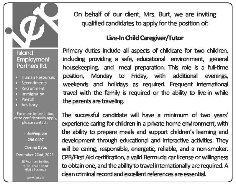 16 Dec 2025 Live-In Child Caregiver/Tutor Posted in By Jobs in Bda On December 16, 2025 Full Time Anywhere Posted 3 minutes ago Dec 16, 2025