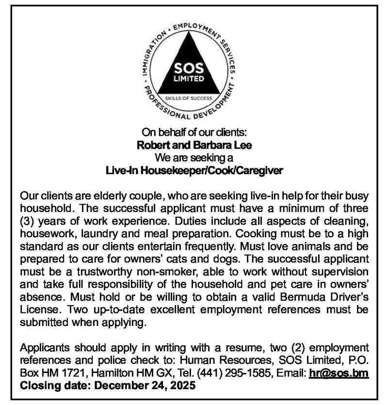 16 Dec 2025 Live-In Housekeeper/Cook/Caregiver Posted in By Jobs in Bda On December 16, 2025 Full Time Anywhere Posted 1 hour ago Dec 16, 2025