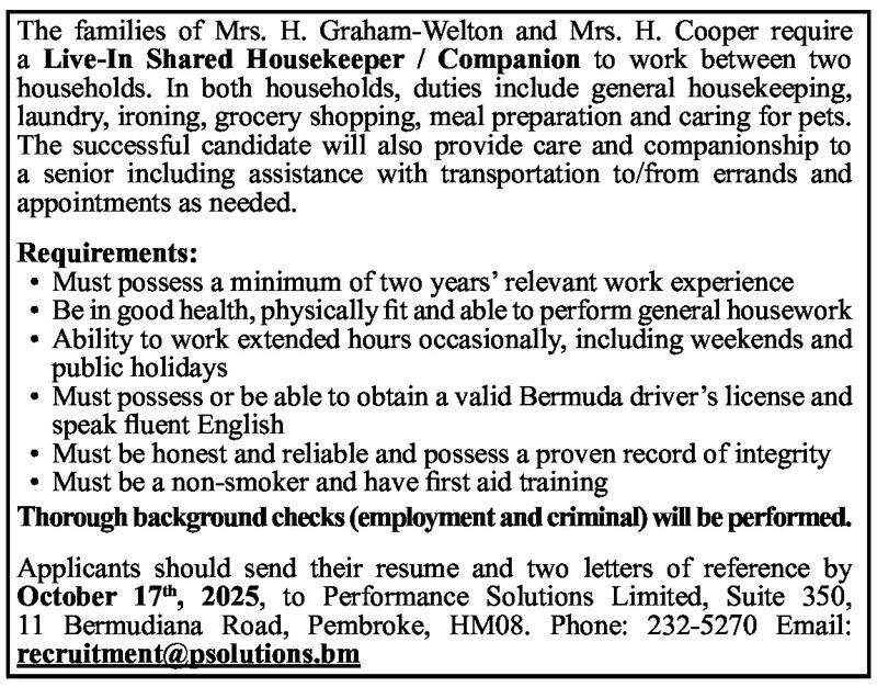 08 Oct 2025 Live-In Shared Housekeeper / Companion Posted in By Jobs in Bda On October 8, 2025 Full Time Anywhere Posted 16 minutes ago Oct 08, 2025