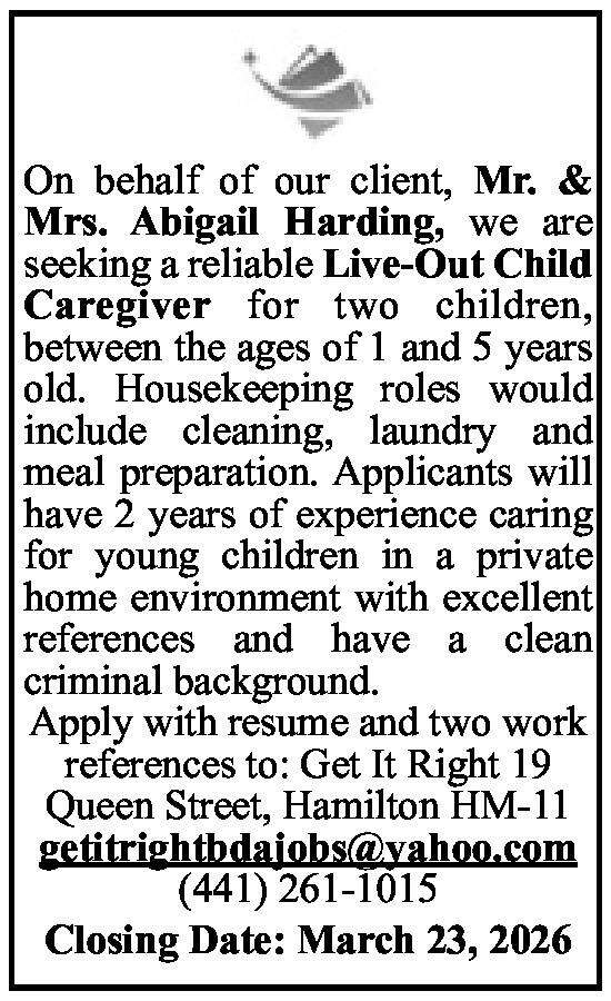 16 Mar 2026 Live-Out Child Caregiver Posted in By Jobs in Bda On March 16, 2026 Full Time Anywhere Posted 1 day ago Mar 16, 2026