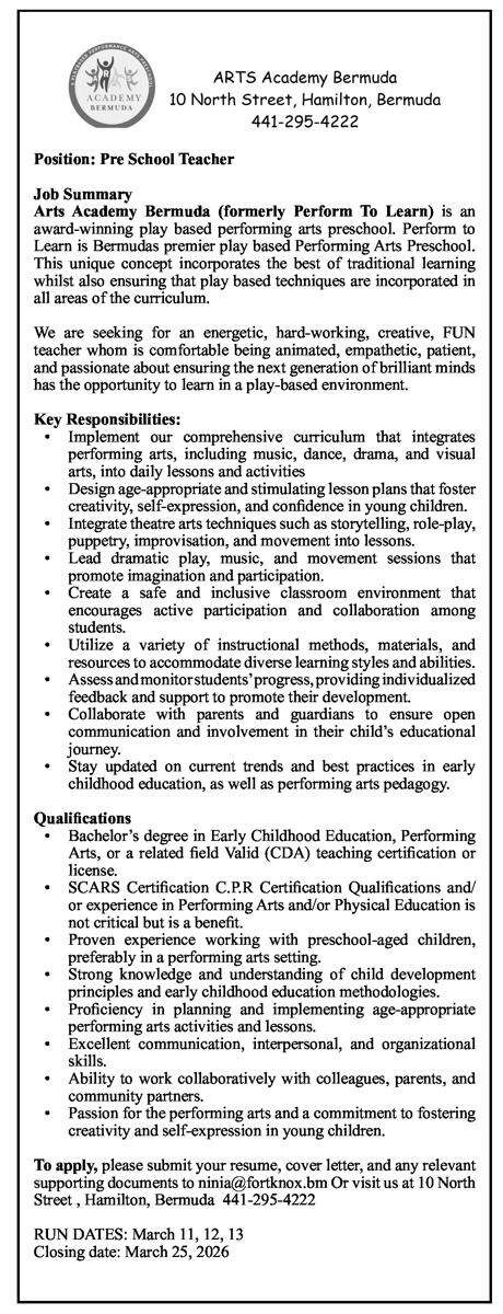 17 Mar 2026 Pre School Teacher Posted in By Jobs in Bda On March 17, 2026 Full Time Anywhere Posted 12 minutes ago Mar 17, 2026