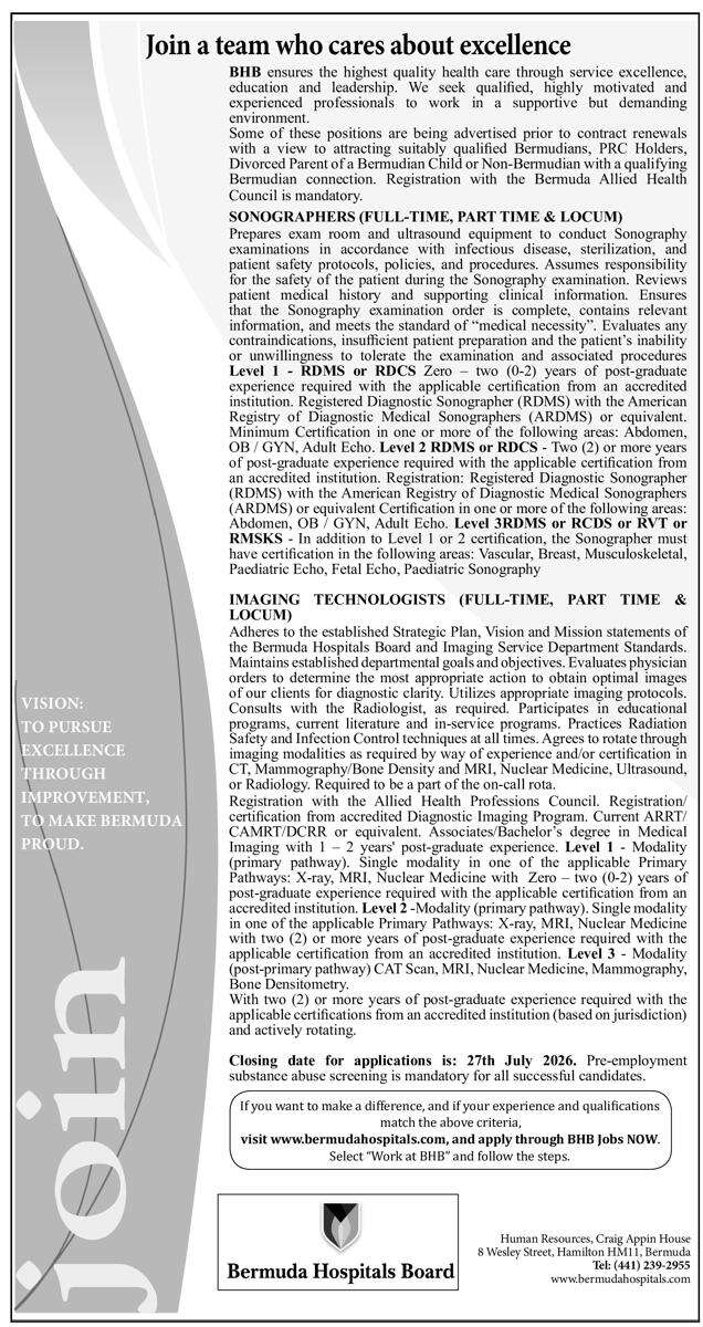 30 Jan 2026 SONOGRAPHERS (FULL-TIME, PART TIME & LOCUM) and IMAGING TECHNOLOGISTS (FULL-TIME, PART TIME & LOCUM) Posted in By Jobs in Bda On January 30, 2026 Full Time Anywhere Posted 16 minutes ago Jan 30, 2026